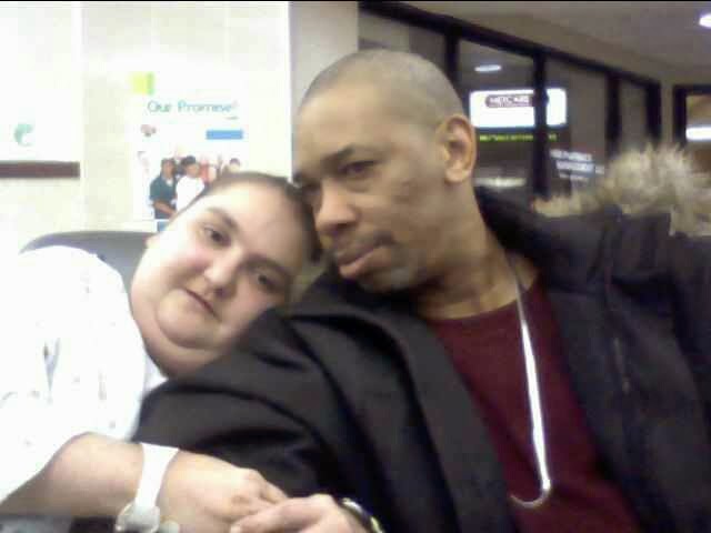 This next photo is of me and my fiance', Vince. It's one of my favorite pics of us together. I didn't take this pic either. It was taken by my social worker while I was a resident of a nursing home in the County hospital. I'm sure you can tell by the look on my face how in love I am with Vince....